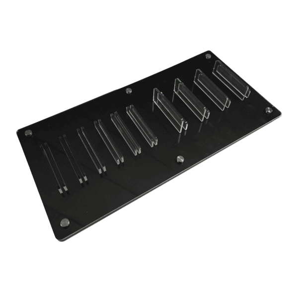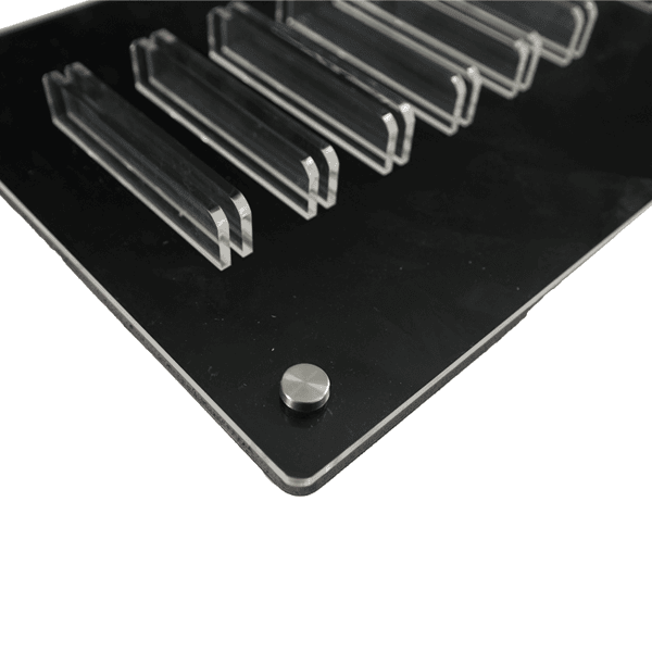 Keep glass panels perfectly organized with this acrylic glass holder. this display rack features precision cut slots that securely hold multiple glass panels upright for easy access and presentation.